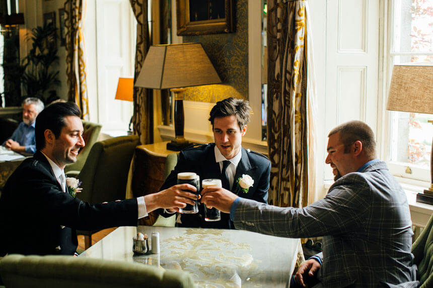 After the ceremony Molly and Patrick together with their guests made their way back to the castle. On the patio, a carpet of canapés was served to the guests, along with Castle Durrow’s signature cocktail, sparkling wine and good Irish beer for guests to refresh with. As everyone relaxed in the Irish summer sun, Molly and Patrick took pictures.