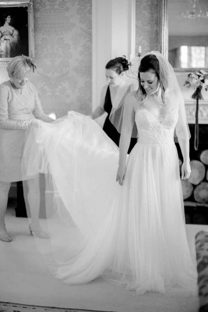 “Getting ready in the morning with my mother and sister, being pampered in a gorgeous castle while sipping champagne and relaxing was just the perfect lead up to the wedding,” says Liz. “The ceremony was also so wonderful…the dinner was so great with everyone sitting wherever they liked and chatting comfortably…there was always someone laughing!”