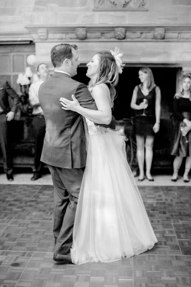 The reception was held in the castle’s dining room. The Irish harp serenaded the guests while the couple with to take pictures. They wanted to incorporate the geode them so they had thinly sliced geode written with their guests’ names in gold calligraphy set out. Each guest was invited to find their name then choose their own seat for this cozy intimate wedding dinner. A five-course dinner including aranchini, leek & potato soup, strawberry balsamic or mojito sorbet palate cleanser, a main course of grilled fillet aged beef or roast fillet of salmon, and a dessert course of dark chocolate torte to finish was served. But the crowning glory was the glorious emerald and gold geode cake of lemon and salted caramel. A DJ spun tunes throughout the reception, 80s music keeping everyone dancing and reveling until the wee morning hours!