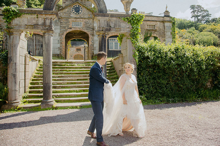 The traditional humanist ceremony was held outdoors in the incomparable garden at Bantry House. An absolutely breathtakingly stunning place, very little decor was needed with this incredible natural backdrop. The ceremony included many Irish traditions including the handfast and ring warming, personal readings and a whole lot of love as you can clearly see.