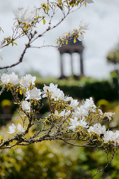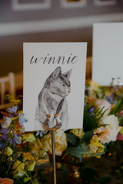 We are so excited to share with you one of our favorite weddings of 2018 from this past spring Waterlily Weddings had the absolute pleasure to help plan, design and produce. Laney and David combined the best of both worlds, hosting a gorgeous ceremony in the breathtaking gardens of Bantry House followed by a botanical themed, intimate sunset reception Eccles Hotel in Glengarriff. Their wedding day was filled with amazing details including a gorgeous vintage Victorian era ring, a dress with a cape (which we love!), gorgeous vintage botanical floral designs and pops of blue to match the water guests overlooked throughout dinner as the sun was setting. Lots of personal touches include a nod to their love of animals: custom hand-painted signs designated the tables — all named after a favorite pet, paw print custom hand-painted French macarons, and custom cocktails Tomcat Collins and Whiskers Manhattan delighted guests. Mishy — our lead designer and stylist — worked closely with Laney and her lovely mum to solidify a color palette inspired by the coastal location and spring including dusty blue, soft pink and peach tones, greenery, and antique gold to add that vintage touch. There to perfectly and eloquently capture every beautiful detail was Siobhan Byrne Photography. From custom DIY wedding bells ringing in the garden to sipping champagne as the sun sets on the Atlantic Ocean, Waterlily Weddings is so happy to share with you today one of our Featured Weddings of 2018.