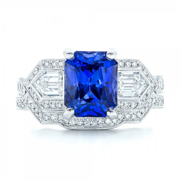 Speaking of sapphires, consider incorporating something blue into your jewelry or even engagement ring! Sapphire blue is a classic stone and trends are moving away from diamonds back to colored stones. A stunning sapphire ring can be the perfect accessory and piece of good luck on your day. We love this gorgeous design by Joseph Jewelry.