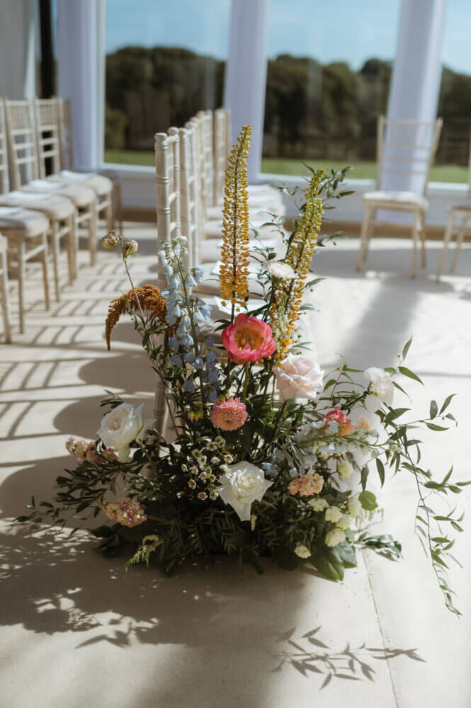 The flowers were always one of the main focuses while planning their wedding, and it was imperative they would be the star of the show. Victoria’s favorite flower is the peony, which although not in season during this August wedding, Frog Prince managed to pull off sourcing enough to create a gorgeous display. The color palette featured bright pink, blush, blue and white. “Our ceremony was like flower heaven…people were talking about our flowers weeks after our wedding. It was honestly incredible…a real life fairytale!” Taking advantage of the gorgeous sunny day, cocktail hour was served outdoors and featured classic pimms & champagne. “With the sun beating down on us we could have been in the south of France – the atmosphere was just dreamy!”