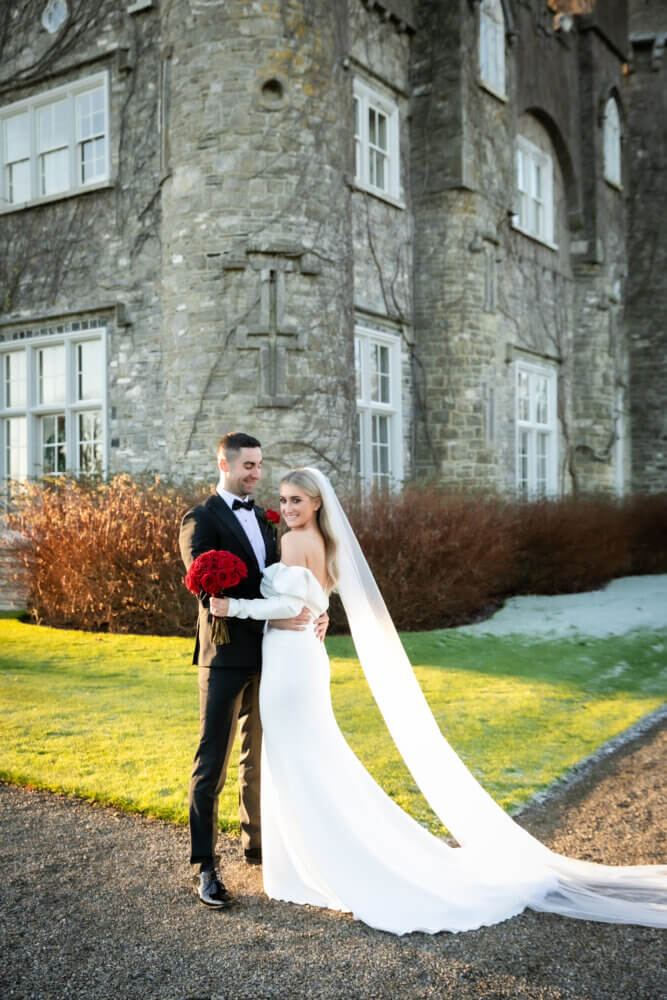 Ireland is a place where you can confidently plan a stunning wedding year-round. Many couples choose spring and summer (for obvious reasons), but we’d love for couples to also consider winter months! With stunning natural light, a cozy castle atmosphere, and lots of sparkling lights — your dream wedding may actually mean a December/January/February date! Gorgeous couple Clodagh and James did just that, choosing the stunning Luttrellstown Castle for their traditional style wedding day that featured spectacular winter berries, silvery eucalyptus, and lots of romantic candlelight.